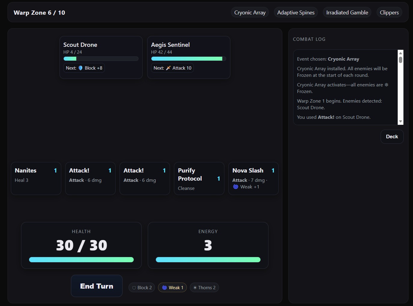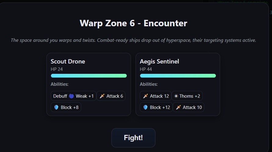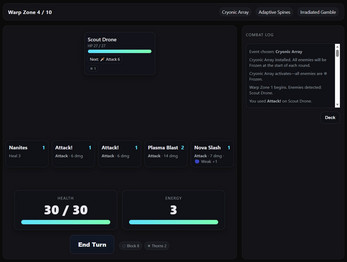 Warp Void — A sci-fi deckbuilder of survival and strategy. Your ship is trapped behind enemy lines. Battle through 10 Warp Zones, build a powerful deck, upgrade your ship, and fight your way home. Turn-based combat with tactical depth—learn enemy patterns, exploit weaknesses, and survive the void.
